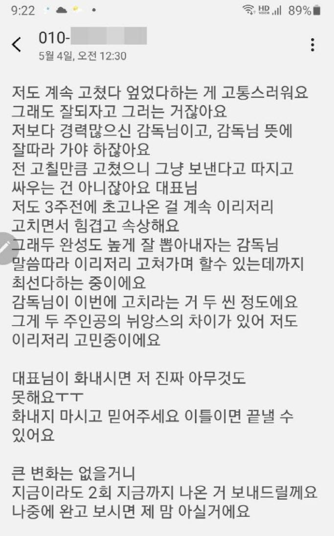 ๋ฐ๋ฉด์ ์คํฐ์ ์ ์์ง์ ์บ๋ฆญํฐ ๋ถ๋๊ณผ ๋๋ณธ ์์ ์ ์์ฒญํ ๊ฒ์ 5์๋ก, ์ด์งํ์ ์ด ๋ ๋๋ณธ์ ๋ณธ ์ํ๊ฐ ์๋์๋ค๋ฉฐ ์๊ฐ๊ฐ ๋ณด๋ธ ๋ฌธ์๋ฅผ ๊ณต๊ฐํ๋ค.